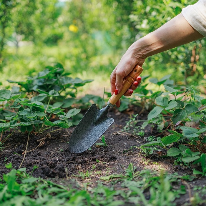 Посадочный совок Greengo — это ручной садовый инструмент. Он нужен, чтобы выкопать ямки (лунки) для семян или рассады. Также с его помощью можно рыхлить землю или окучивать небольшие растения.