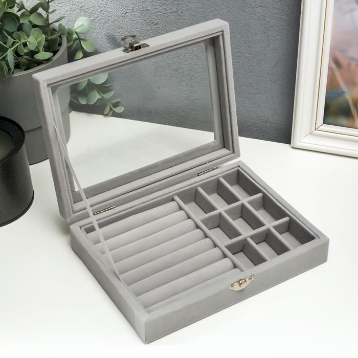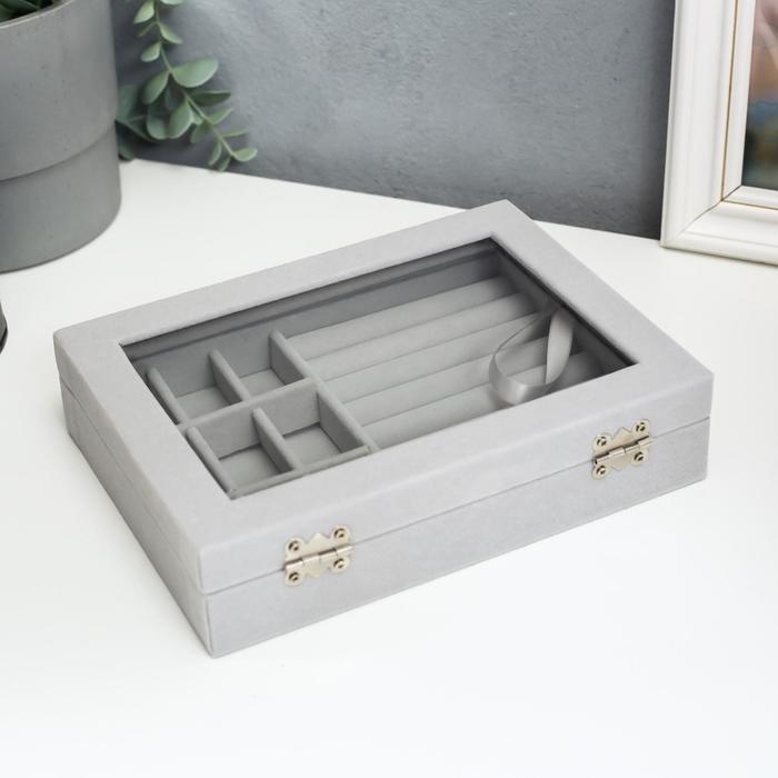 Шкатулка для украшений «Серый туман», бархат, с замком, 4.5×20×15 см