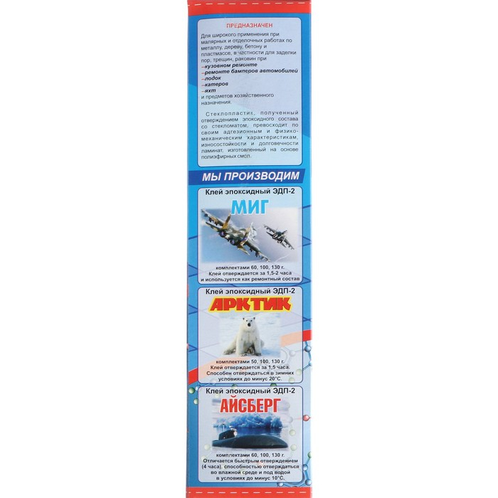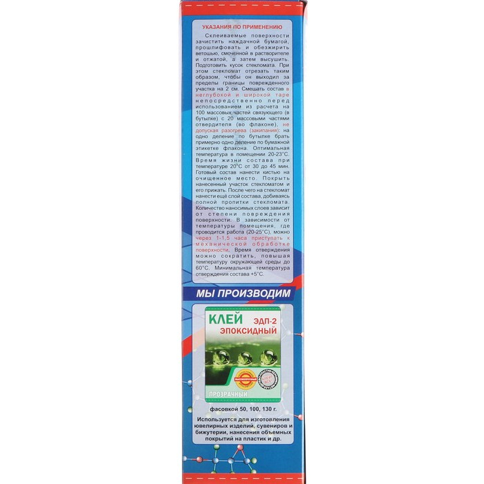 Используется при покрасочных и отделочных работах по металлу, пластмассе, дереву, бетону, в частности для заделки пор, трещин, раковин при кузовном ремонте, ремонте бамперов автомобилей, лодок, катеров, яхт и др. При проведении работ при температуре 20-25°С позволяет через 1-1,5 часа притупить к механической обработке поверхности. Стеклопластик, полученной отверждением ремонтного комплекта по своим адегиозным и физико-механическим характеристикам, износостойкости и долговечности превосходит изделия, изготовленные на основе полиэфирных смол.