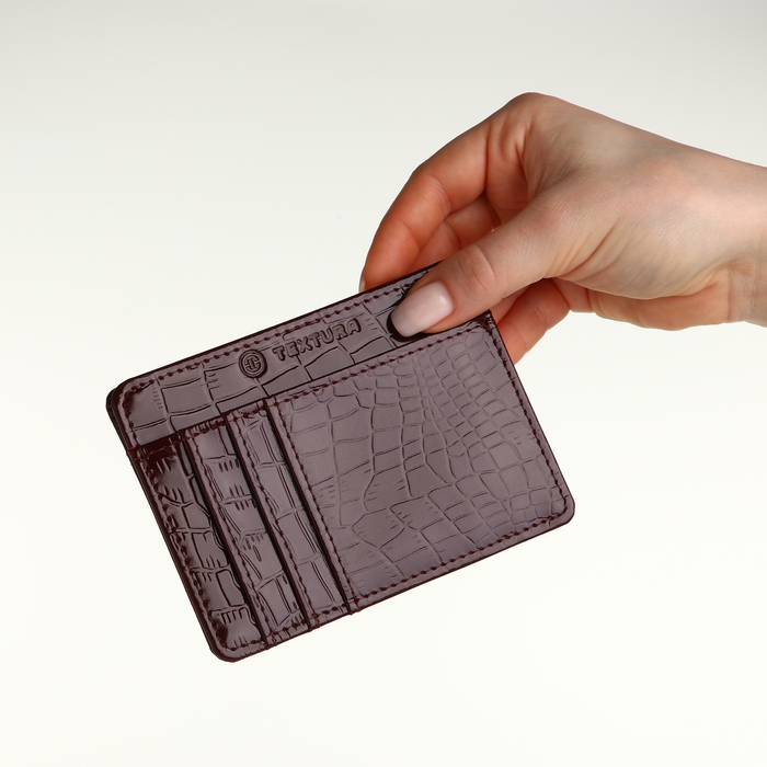 Картхолдер кожаный, TEXTURA, 4 карты, цвет бордовый