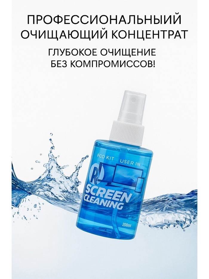 Набор чистящий для экранов, салфетка, спрей 200 мл