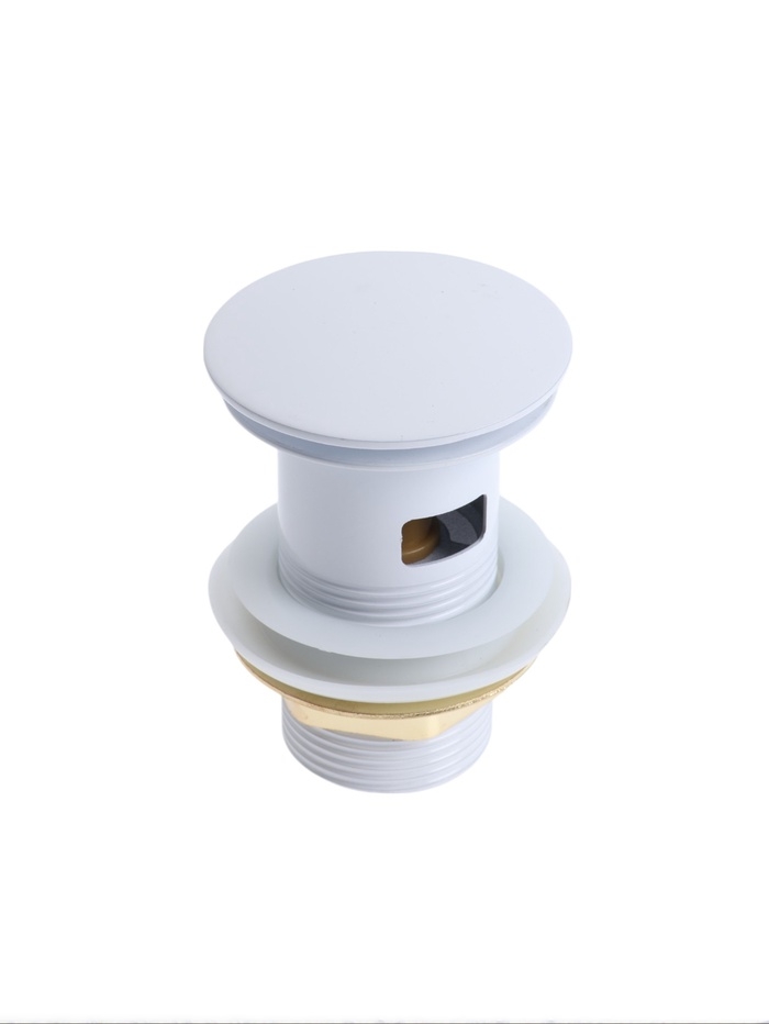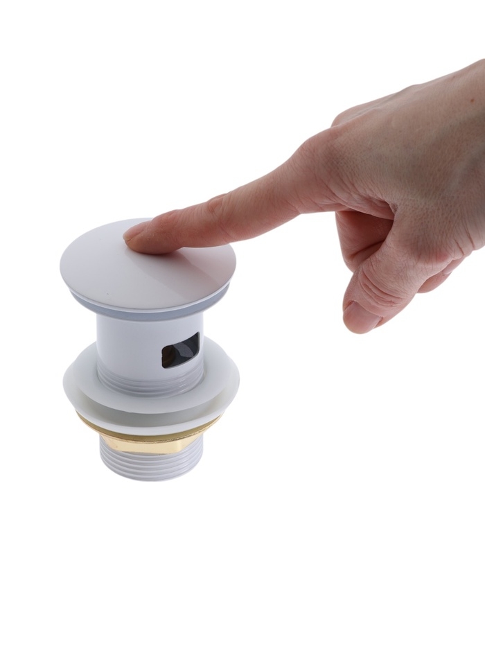 Донный клапан ZEIN engr, большая кнопка, с переливом, нержавеющая сталь, белый