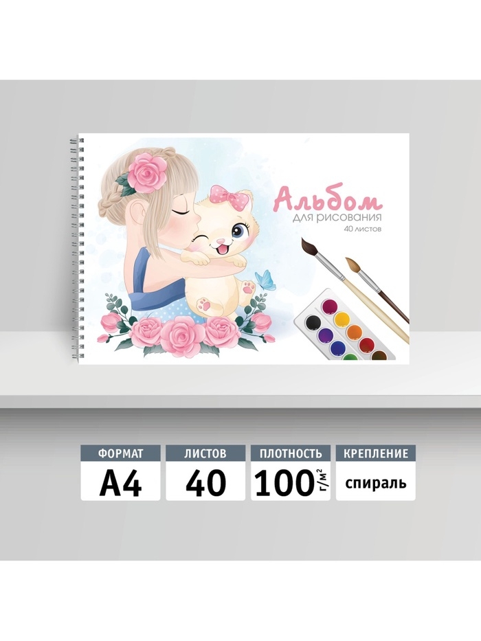 Альбом для рисования на гребне, 40 листов, «Мой котенок» с глиттером – это практичный блок для творчества с привлекательным дизайном. Благодаря плотности 100 г/м² и яркому оформлению, он подходит для различных техник рисования и помогает реализовать самые смелые идеи.