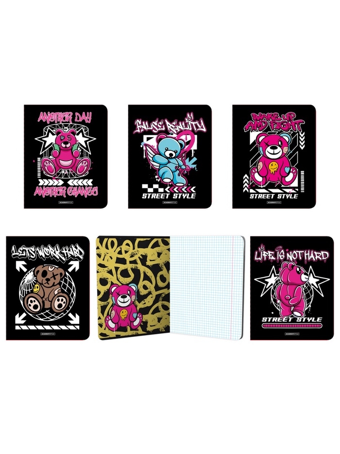 Тетрадь 48л кл Мишки-мотивашки, обл карт, softouch, выб УФ-лак, МИКС