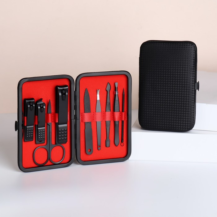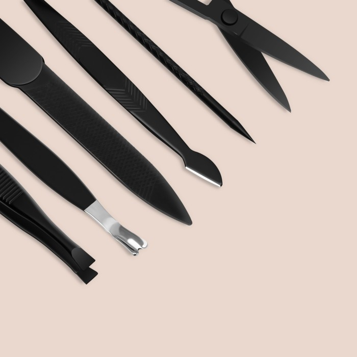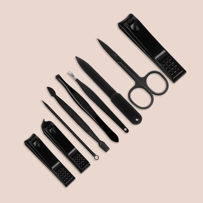 Набор маникюрный, 9 предметов, в футляре, цвет чёрный