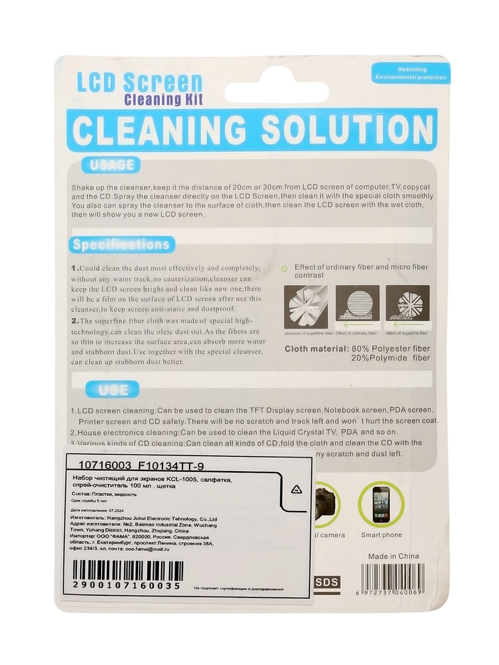 Набор чистящий для экранов KCL-1005, салфетка, спрей 100 мл , щетка