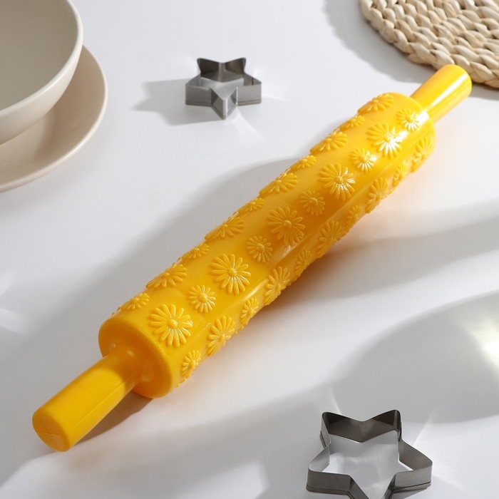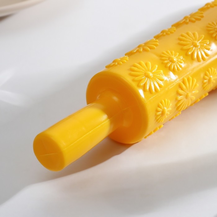 Скалка кондитерская «Ромашки», 37 см, рабочая часть 25 см, фактурная, цвет МИКС