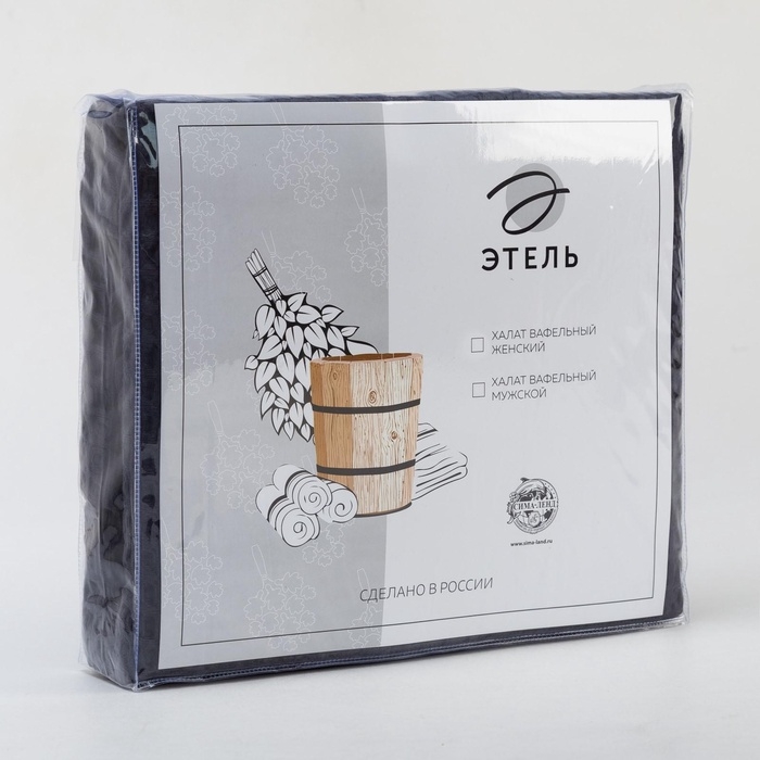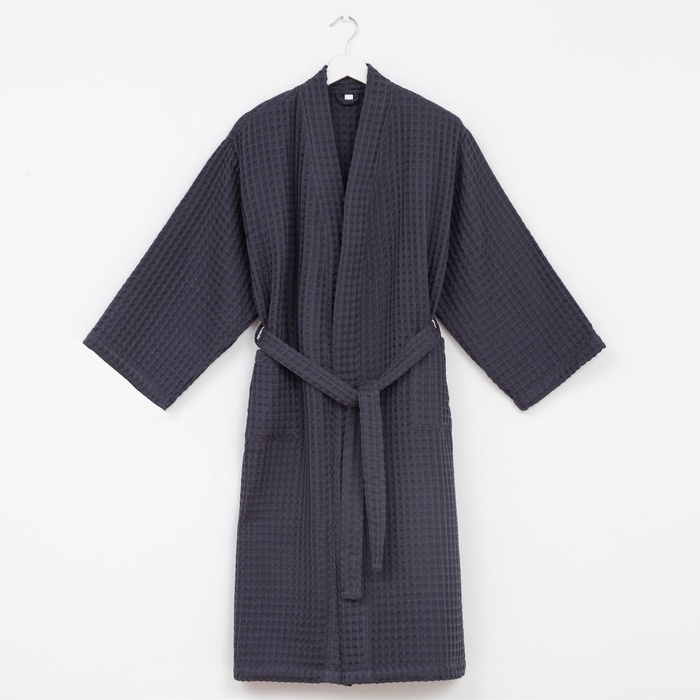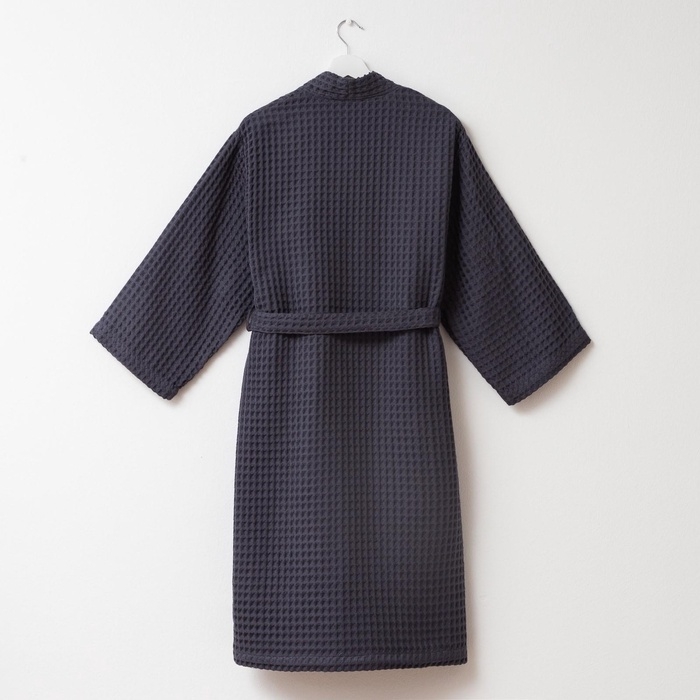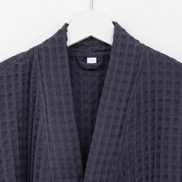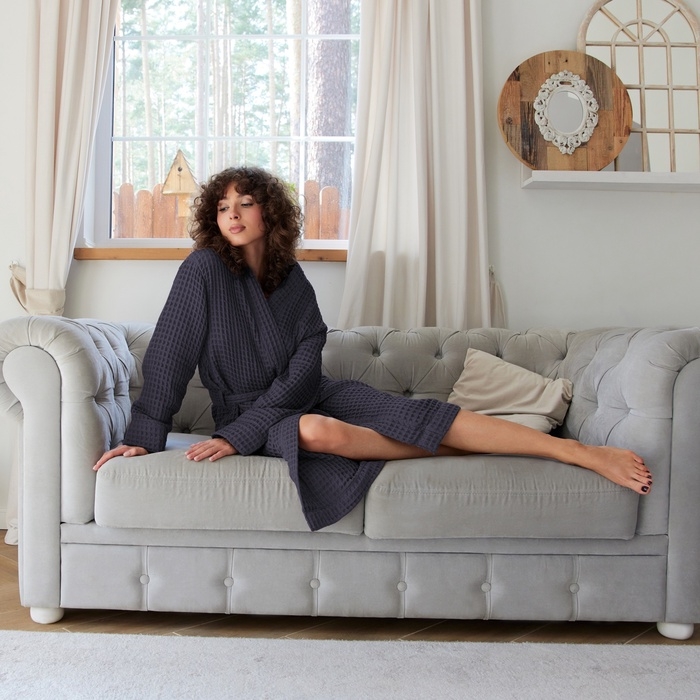 Халат вафельный женский удлинённый Этель "Boho" размер 42-44, цвет тёмно-серый, 100% хлопок, 290 г/м2