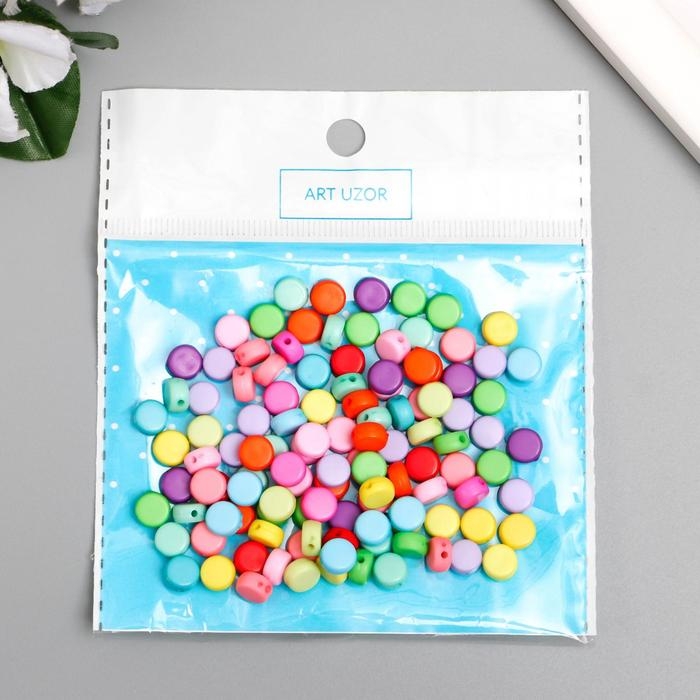 Бусины для творчества пластик "Яркие кружочки" набор 20 гр 0,4х0,7х0,7 см