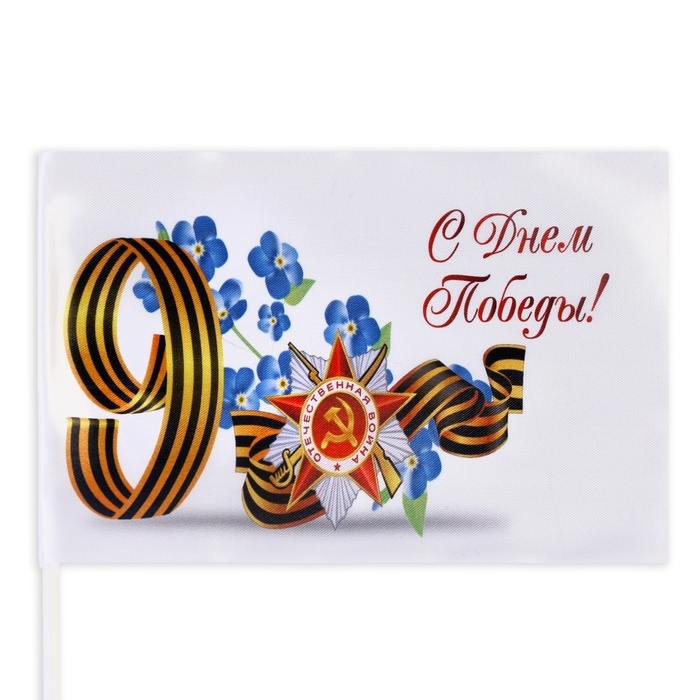 Флаг "9 мая", 14 х 22 см, полиэфирный шелк, с древком, набор 8 шт