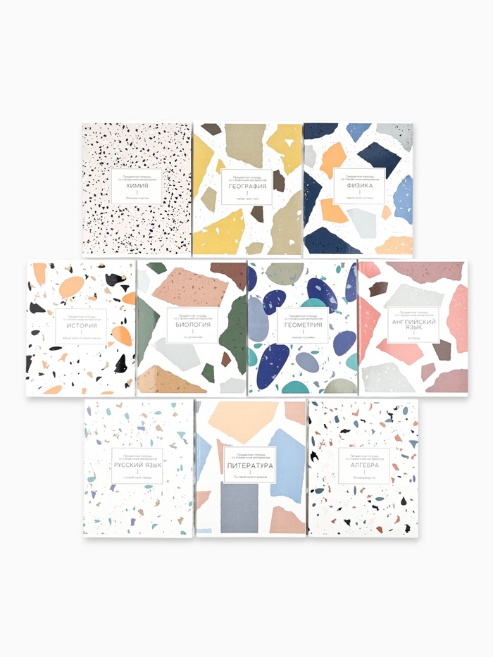 Комплект предметных тетрадей 48 листов "Мрамор светлый", 10 предметов, со справочным материалом, обложка мелованный картон, УФ-лак (полный), блок офсет