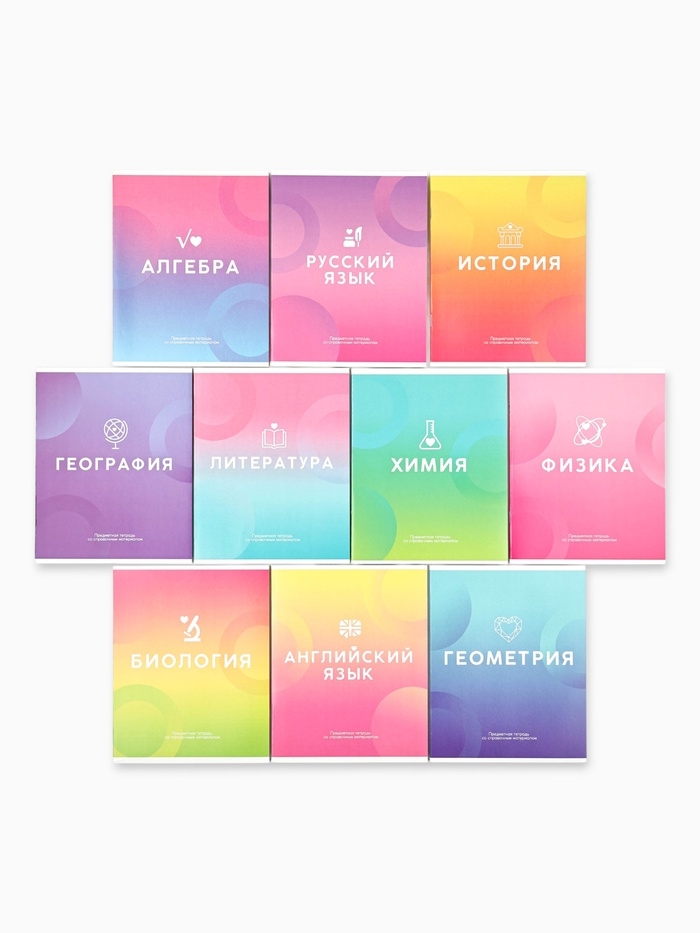 Набор тетрадей 48 листов, 10 предметов, внутренний блок №1 «Градиент» ТВИН лак, уф лак