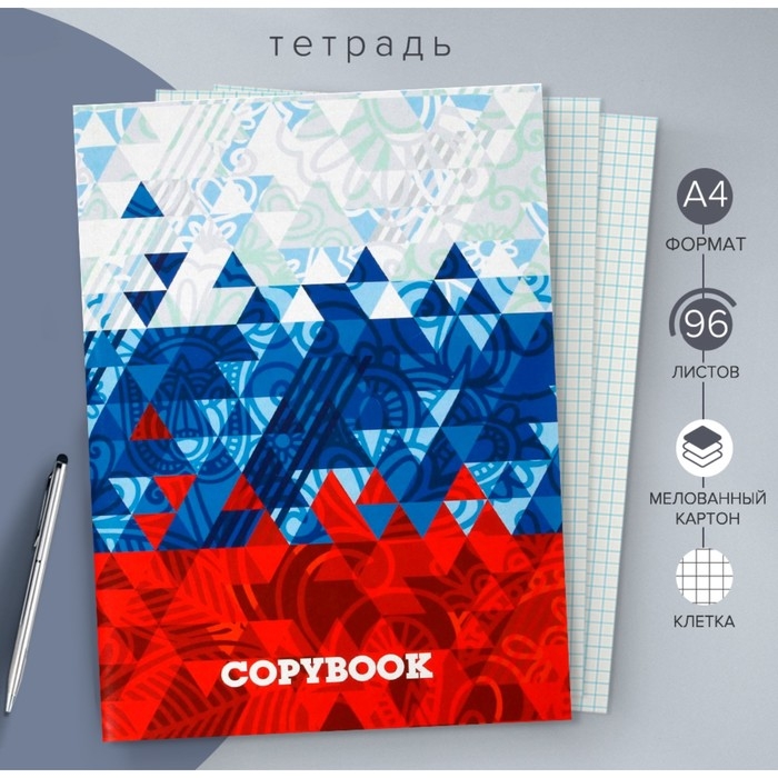 Тетрадь А4, 96 листов в клетку Calligrata "Паттерн", обложка мелованный картон, блок №2, белизна 75%, триколор, (серые листы)