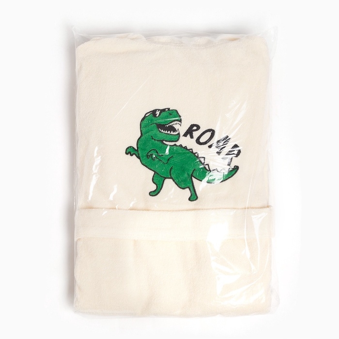 Халат махровый детский "Динозавр" р-р 34 (122-128 см), бежевый