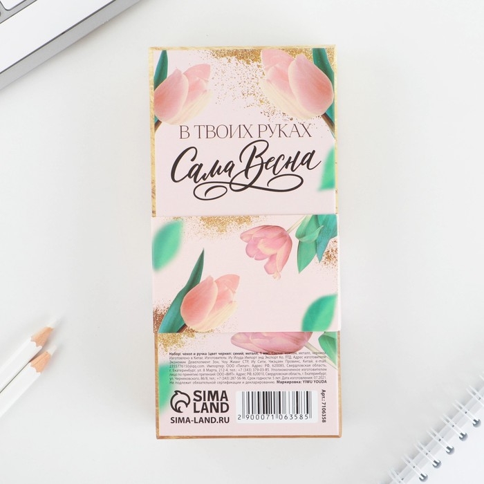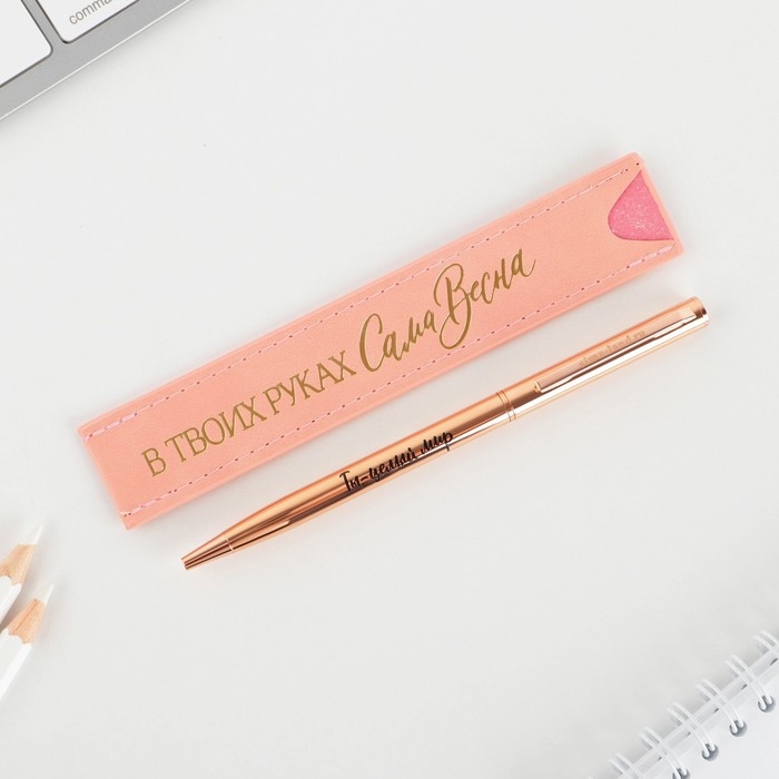 Подарочный набор ручка розовое золото и кожзам чехол «С 8 марта»