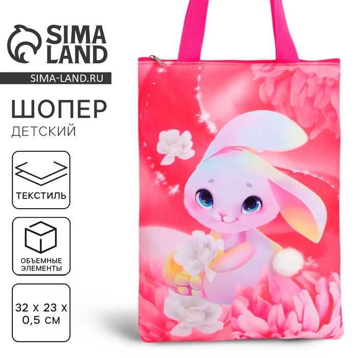 Сумка-шопер детская для девочки «Зайчик» на молнии, 32×23 см