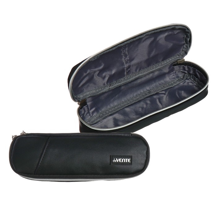 Пенал "deVENTE. Private" 22x6x4 см, овальный для 40 предметов, матовая искусственная кожа до -40C, внешний карман, внутренний карман, с каучуковой аппликацией, черный