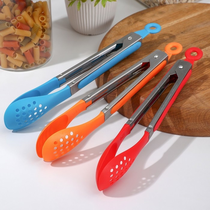 Щипцы кухонные Доляна «Яркость», 201 сталь, 24×4,5 см, цвет красный