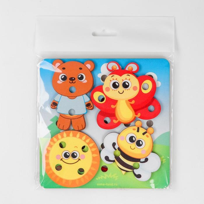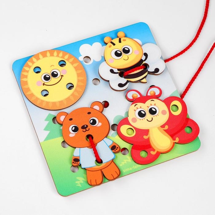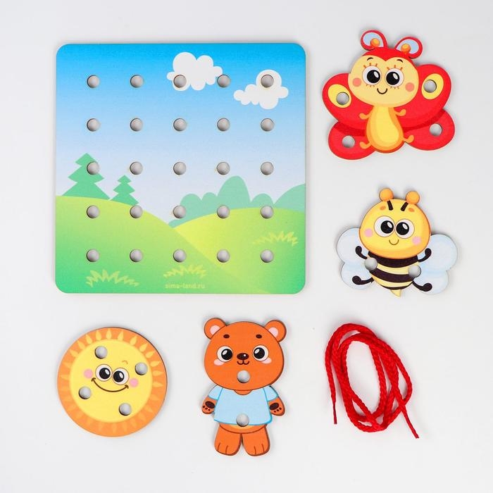 Игрушка-шнуровка в первую очередь направлена на развитие мелкой моторики. Во время игры малыш будет продевать шнурок сквозь отверстия в игровом поле, а также в фигурках. Покажите, что можно делать стежки, а также завязывать и развязывать узелки.Яркие персонажи сделают игру не только развивающей, но и интересной. Придумывайте вместе с ребёнком сюжеты, разыгрывайте истории.