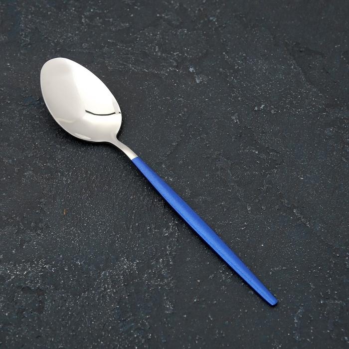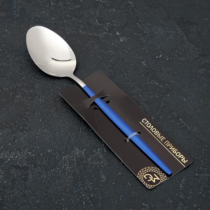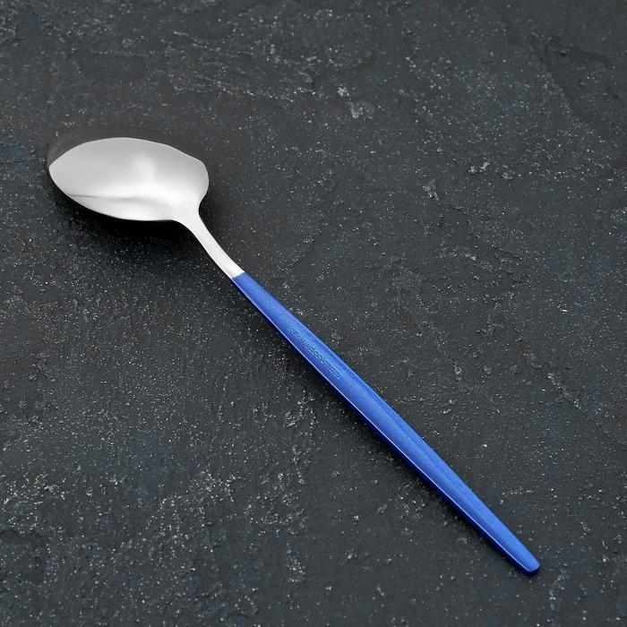 Ложка столовая из нержавеющей стали Magistro «Блинк», длина 22 см, на подвесе, цвет серебряный, синяя ручка