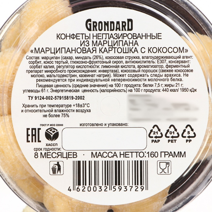 Конфеты марципановые Grondard «Картошка», 160 г