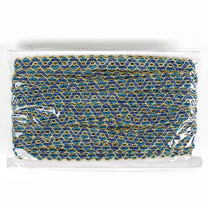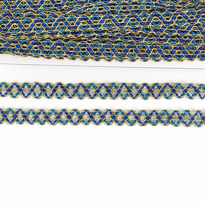 Тесьма «Змейка», сине-голубая с золотом, 1,5 см, 25 м