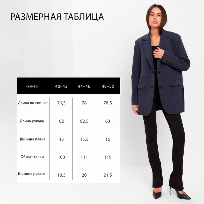 Пиджак женский с боковыми разрезами MIST размер 44-46, цвет синий