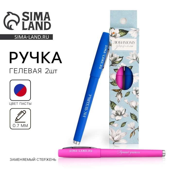 Ручка гелевая «Любимому учителю», 2 штуки, синяя и красная паста,пишущий узел 0.7