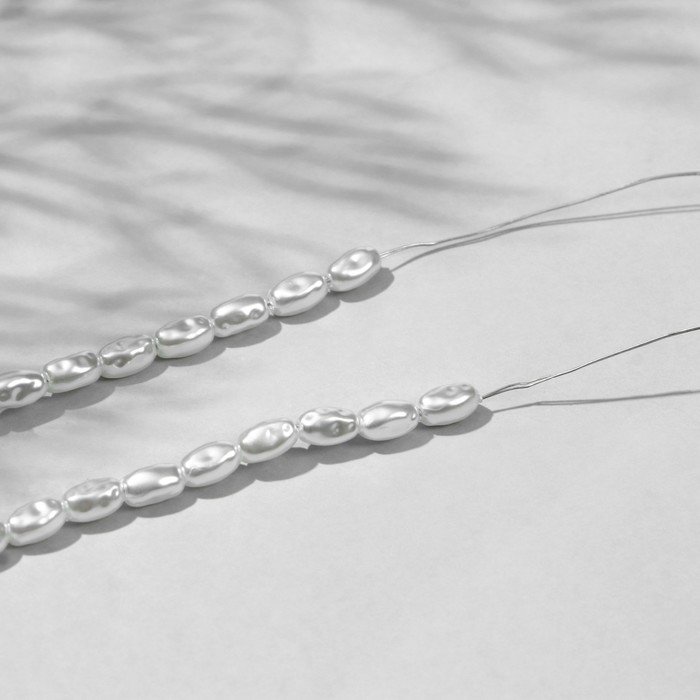 Бусины пластиковые на нити «Жемчуг» рис 0,7×0,5×0,5 см, (набор 150 шт.), цвет белый