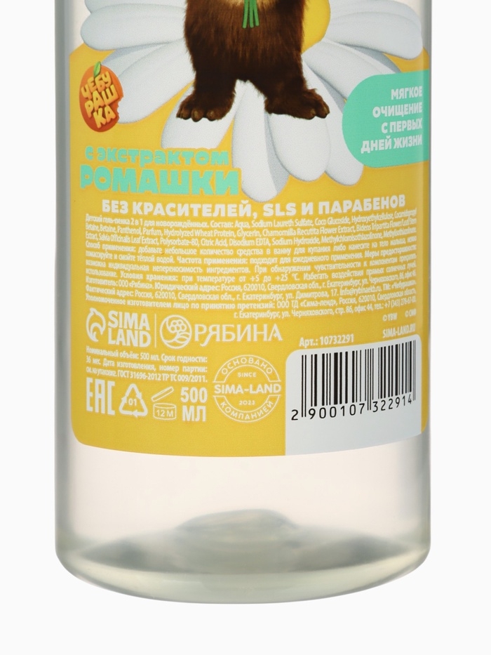 Гель-пенка для купания с экстрактом ромашки, 500 мл, Чебурашка