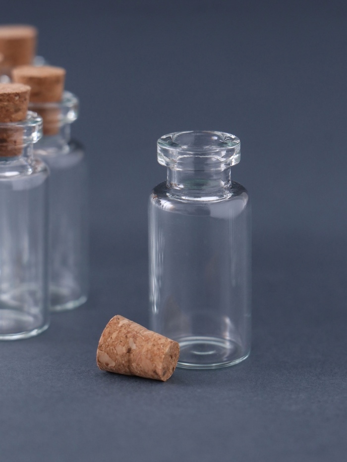 Бутылочка с пробкой, стекло, прозрачная 3 мл набор 12 шт 3,5х1,6х1,6 см