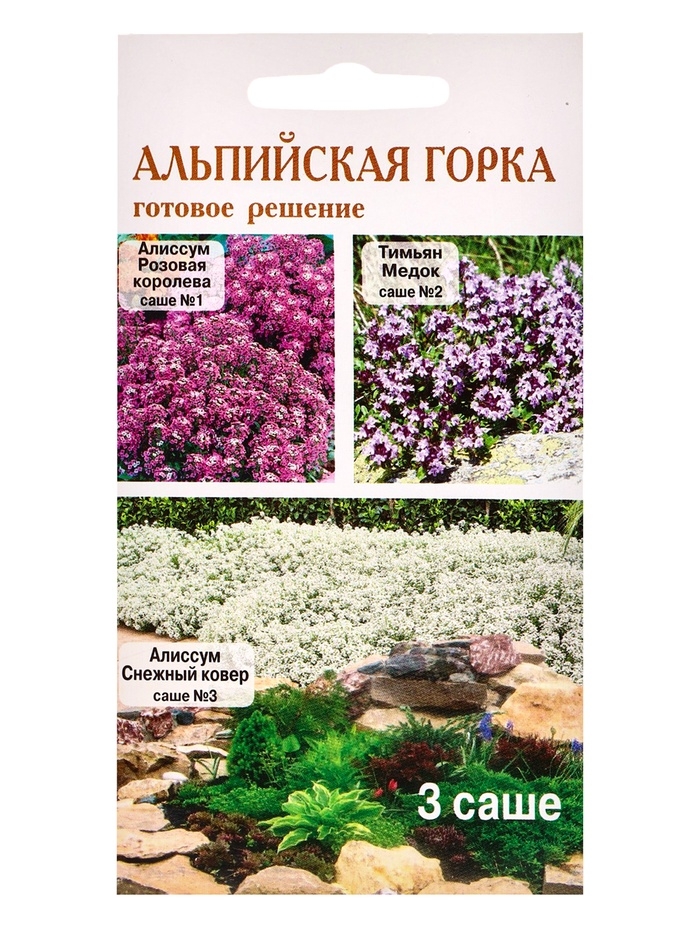 Семена Набор "Альпийская горка", Алиссум белый, Тимьян, Алиссум розовый, 0,03 г