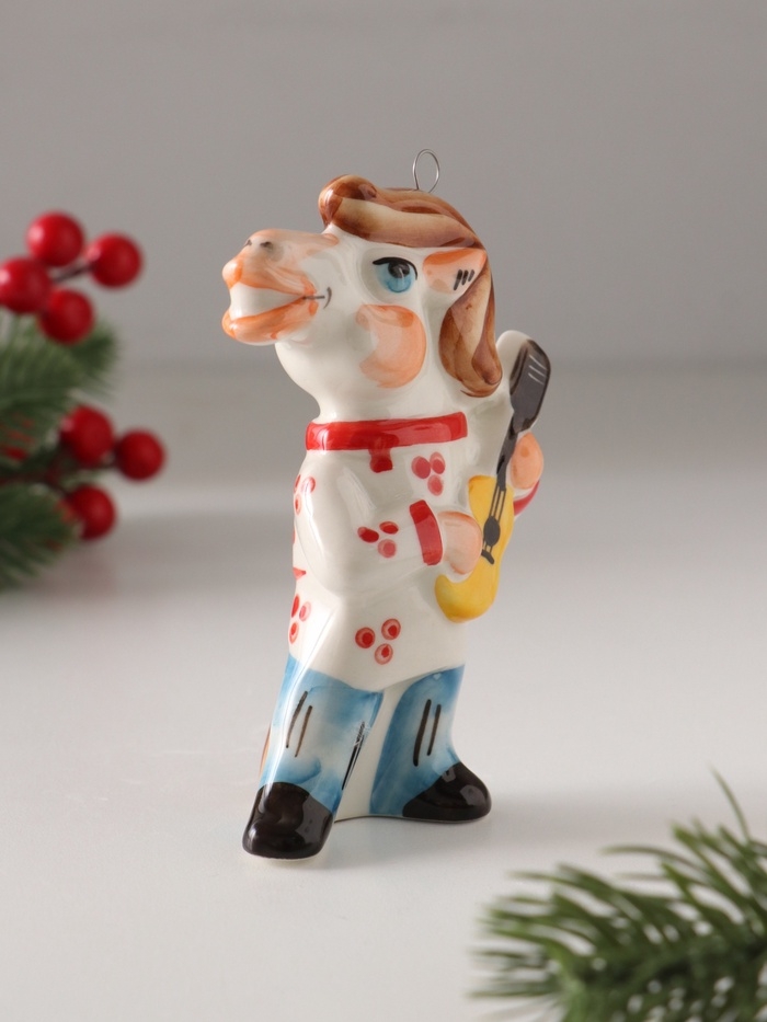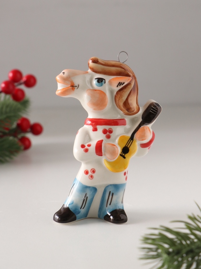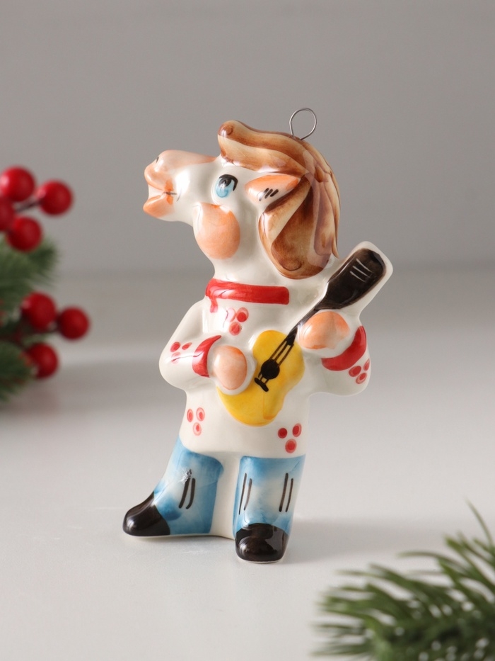 Ёлочная игрушка фарфоровая "Конь Цыган с гитарой", 11 см