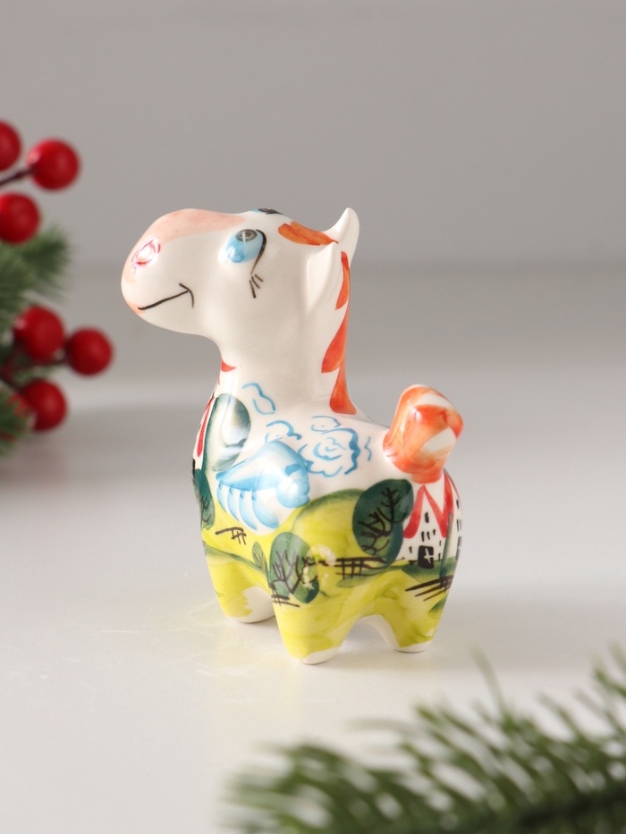 Статуэтка фарфоровая "Конь Пегас Город" /авторскмя роспись О.Огородникова/, 8 см