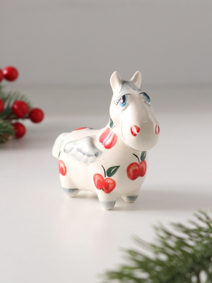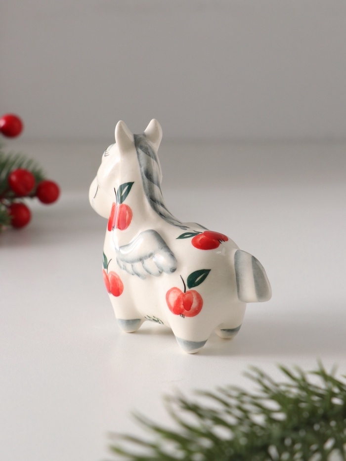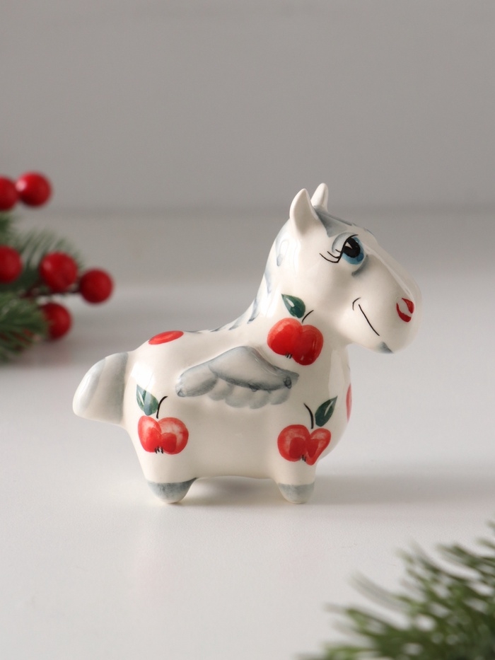 Статуэтка фарфоровая "Лошадь Пегас" /красное яблоко/, 8 см