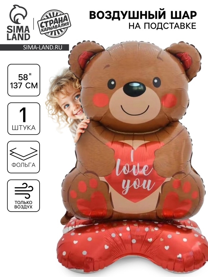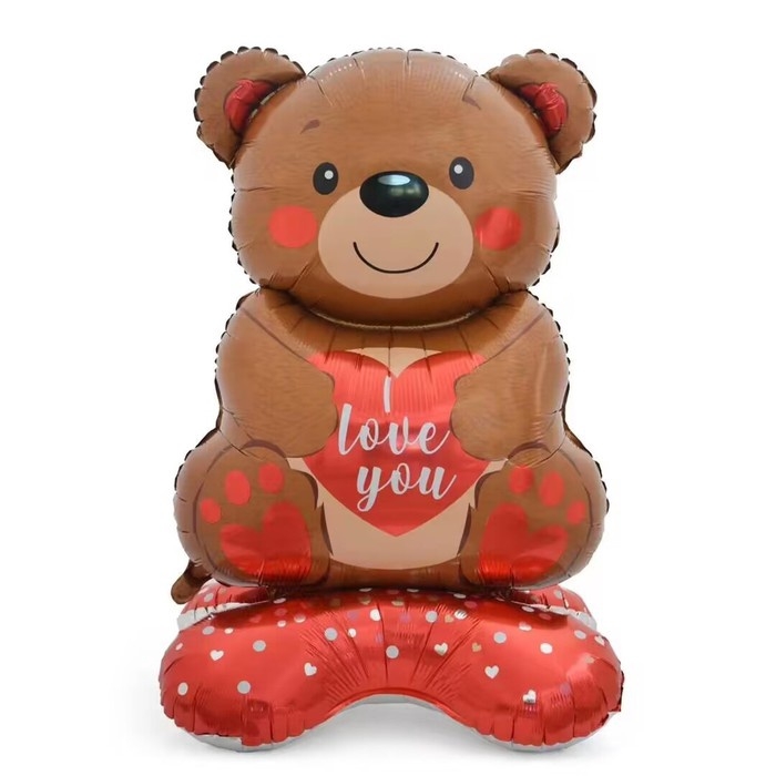 Воздушный шар фольгированный 58" «Медведь с сердцем», на подставке