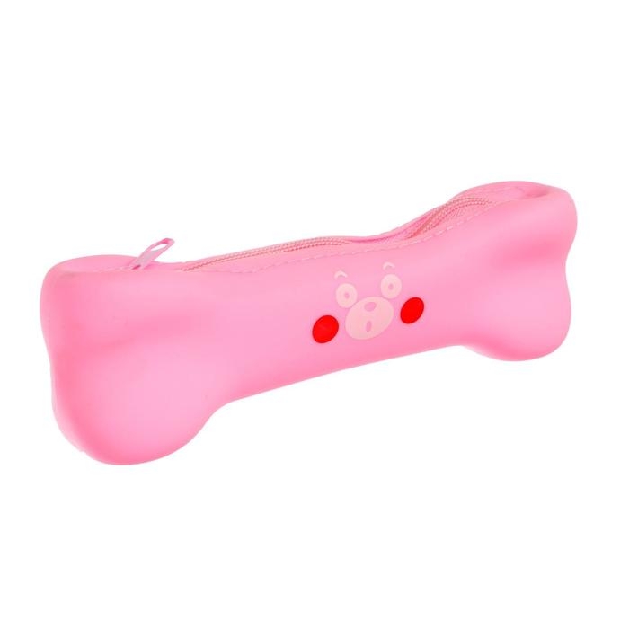 Пенал школьный "Кость" на молнии, силиконовый, розовый