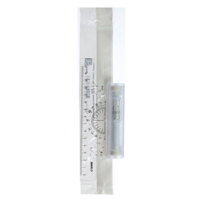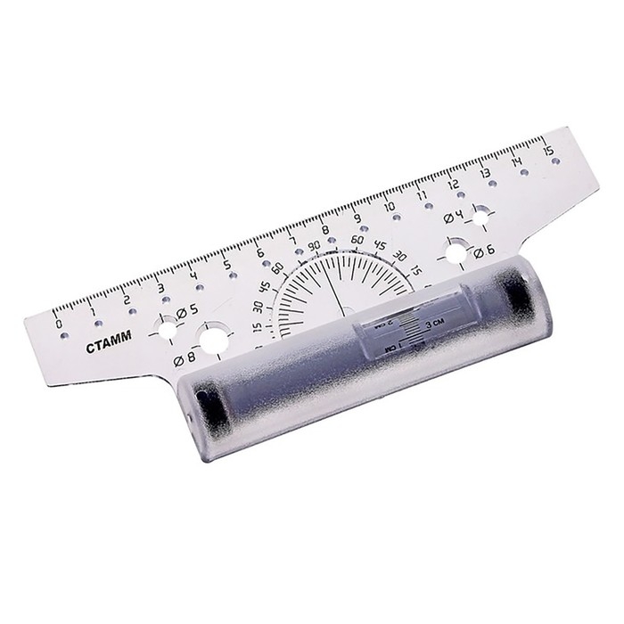 - Содержит транспортир 180 град. и трафареты окружностей.