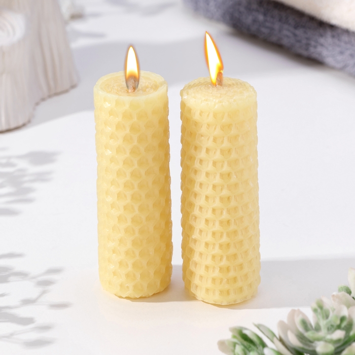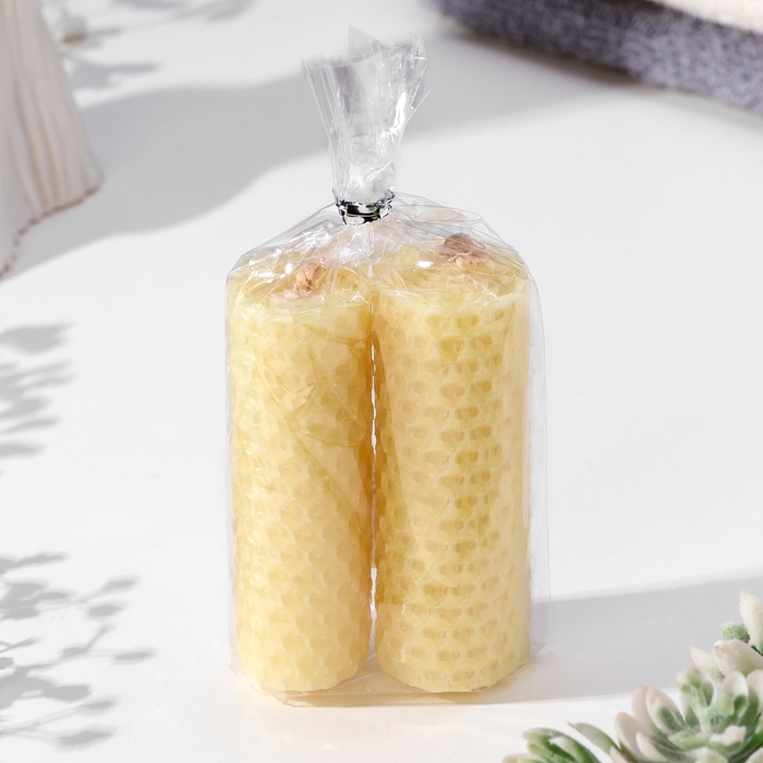 Набор свечей из вощины медовых с добавлением эфирного масла "Апельсин" 8 см, 2 шт