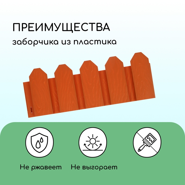 Ограждение декоративное, 18 × 300 см, 6 секций, пластик, терракотовое, «Дачник»