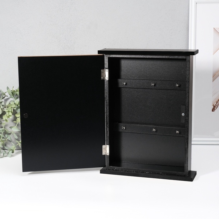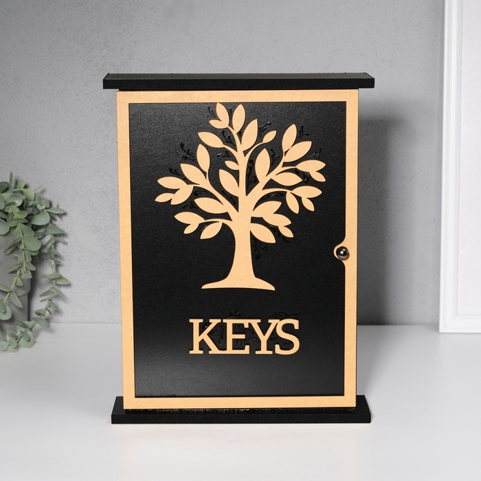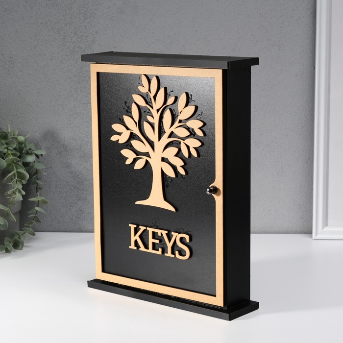 Ключница дерево "Дерево" чёрная, зеркальная 6х22,3х29,5 см