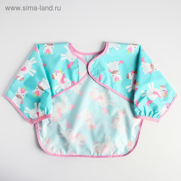 Нагрудник-рубашка для кормления «Единороги» непромокаемый на липучке, с карманом