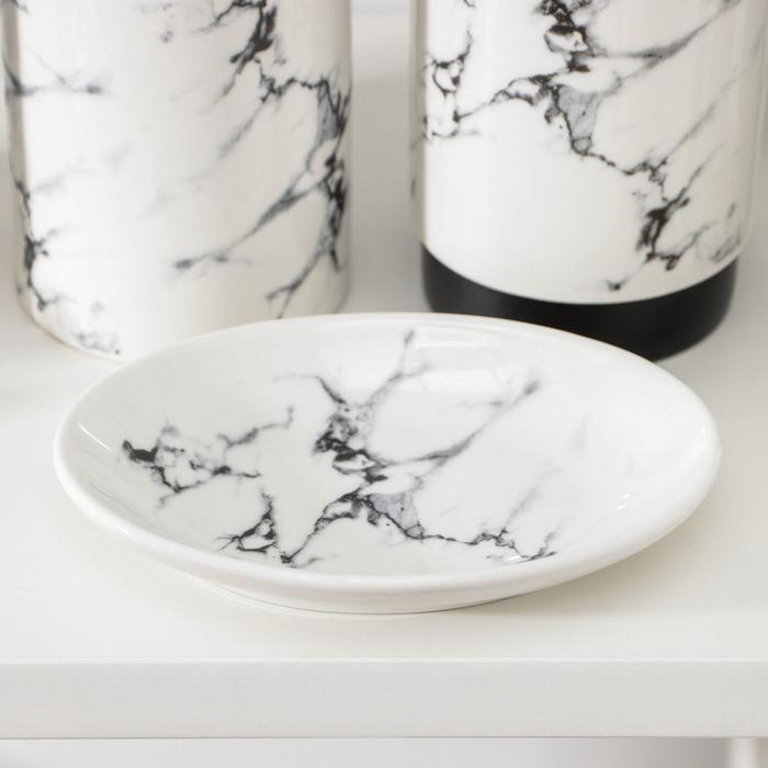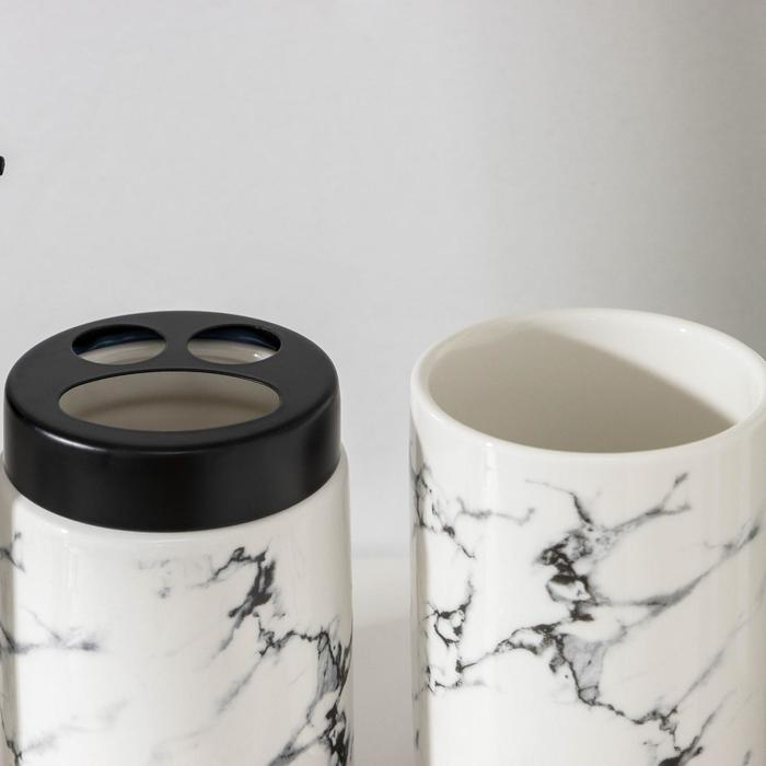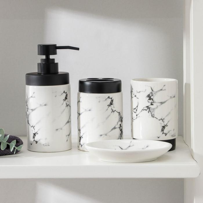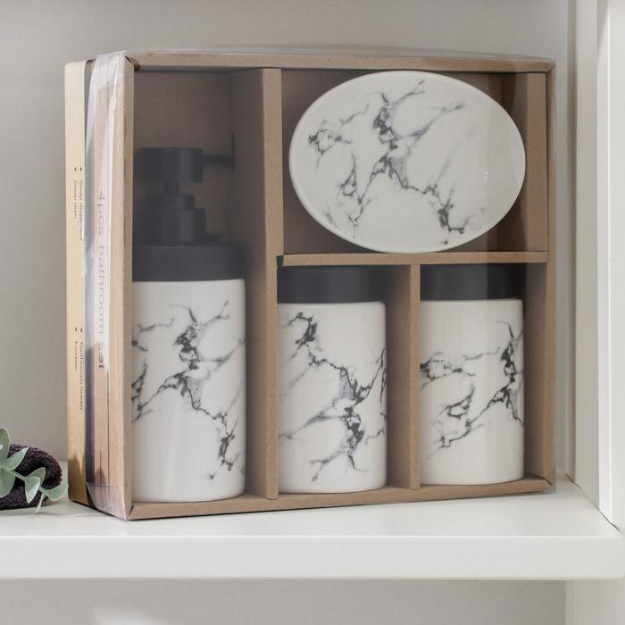 Набор аксессуаров для ванной комнаты «Мрамор», 4 предмета (дозатор 190 мл, мыльница, 2 стакана 290 мл), цвет белый