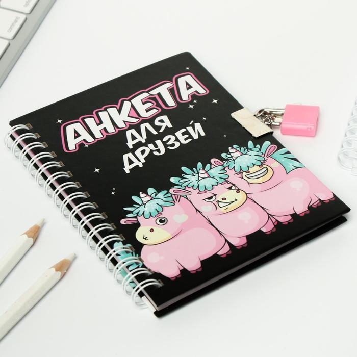 Анкета на замочке, в твердой обложке А6, 40 листов «Все друзья в сборе»