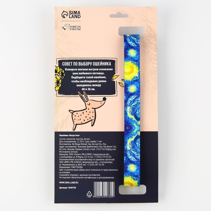 Ошейник «Искусство», застёжка - фастекс, 2.5 см, 40-55 см