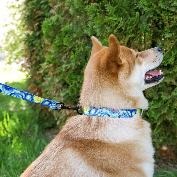 Вы можете собрать комплект амуниции, подобрав поводок с таким же принтом и надёжным карабином из нашего ассортимента.