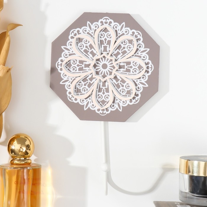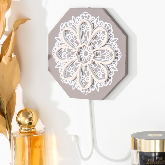 Настенный крючок декоративный «Ажурный цветок. Восьмигранник», дерево, 11.6×0.7×20 см