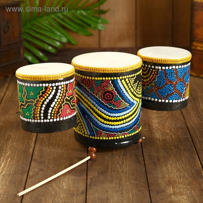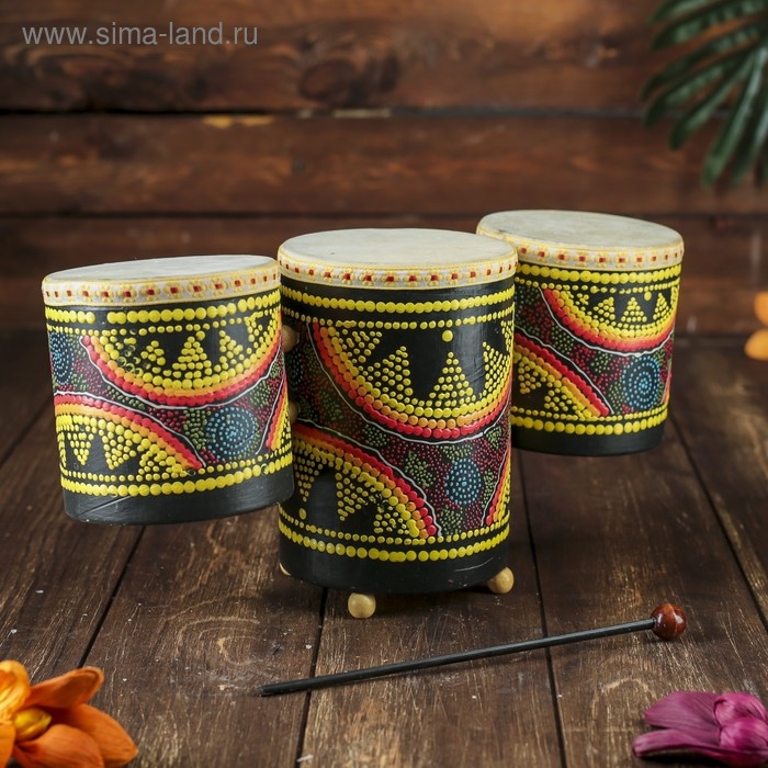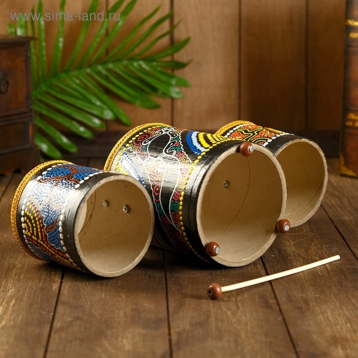 Сувенирный музыкальный инструмент "Барабаны тройные" 33х17х11 см МИКС