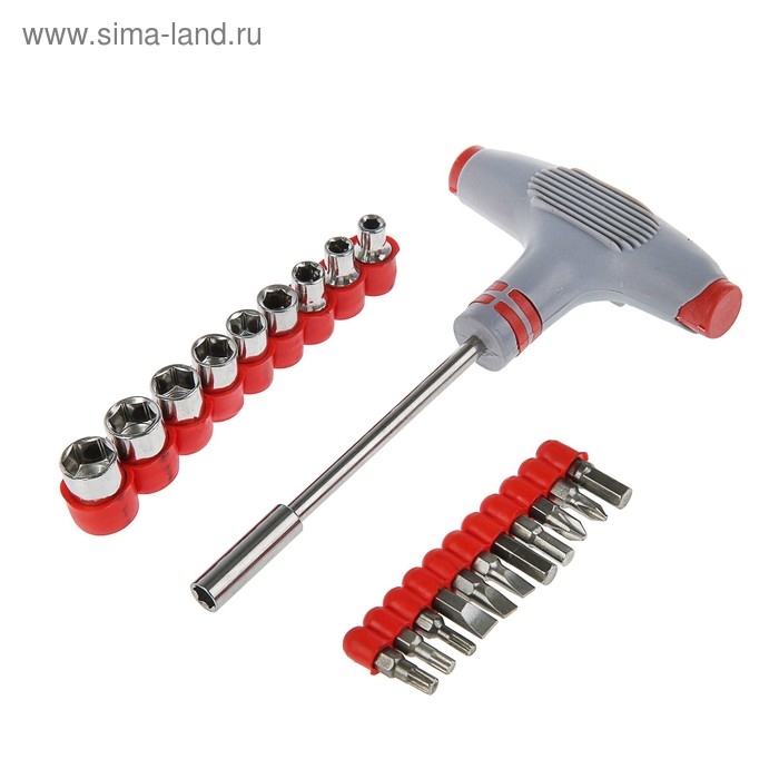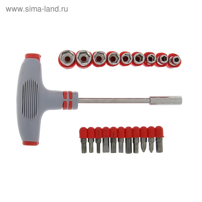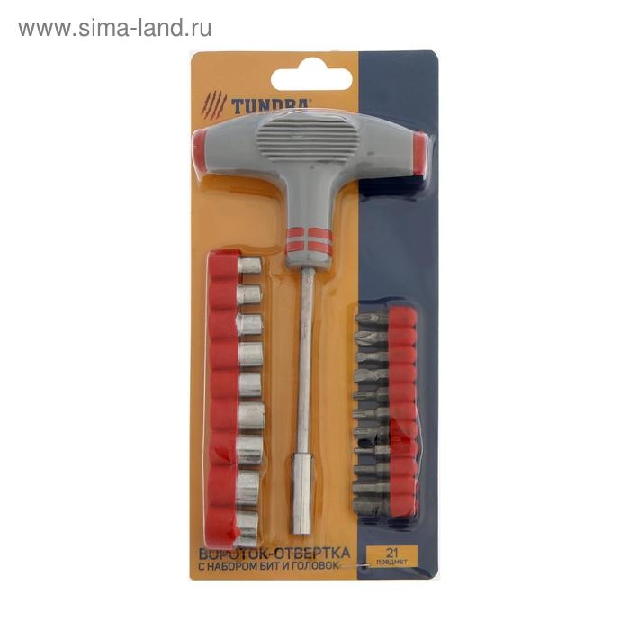 Отвертка с набором бит и головок ТУНДРА, Т-образный профилированный держатель, 21 предмет