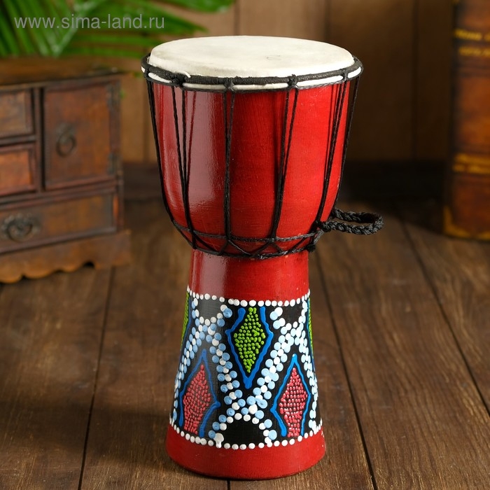 Барабан Джембе Красный орнамент, 38 х 21 см